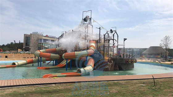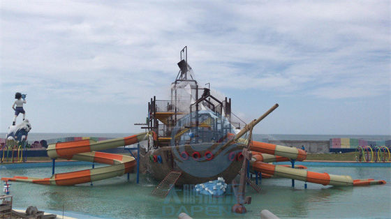 Spesifikasi tentangFiberglass Pirate Ship Aqua Tower Gaya Taman bermain air Slide