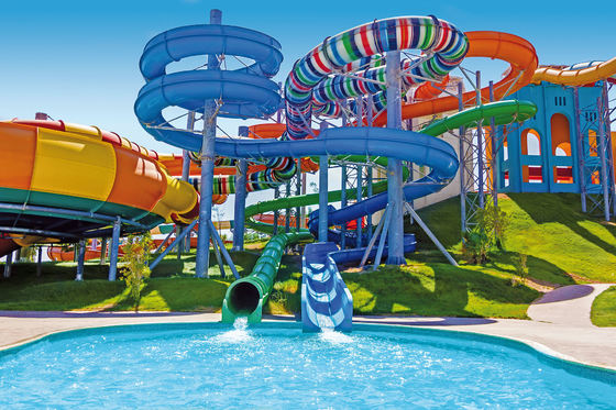 Customized Colorful Fiberglass Water Park Slide for Resort Hotels Ending with Pool 1