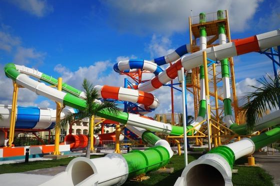 Customized Colorful Fiberglass Water Park Slide for Resort Hotels Ending with Pool 0